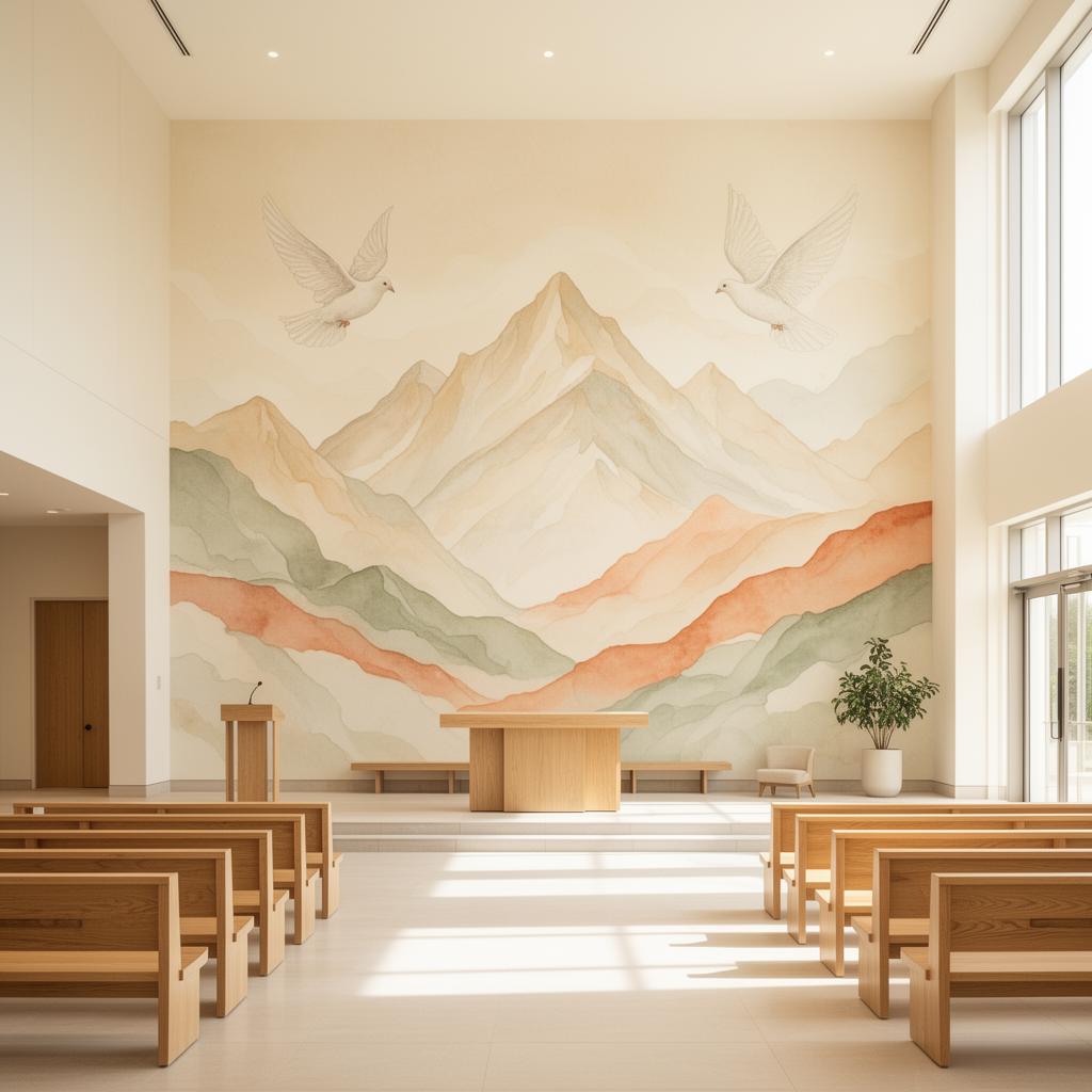 Modern, hand-painted church murals created to bring warmth, scripture, and identity into every worship space.